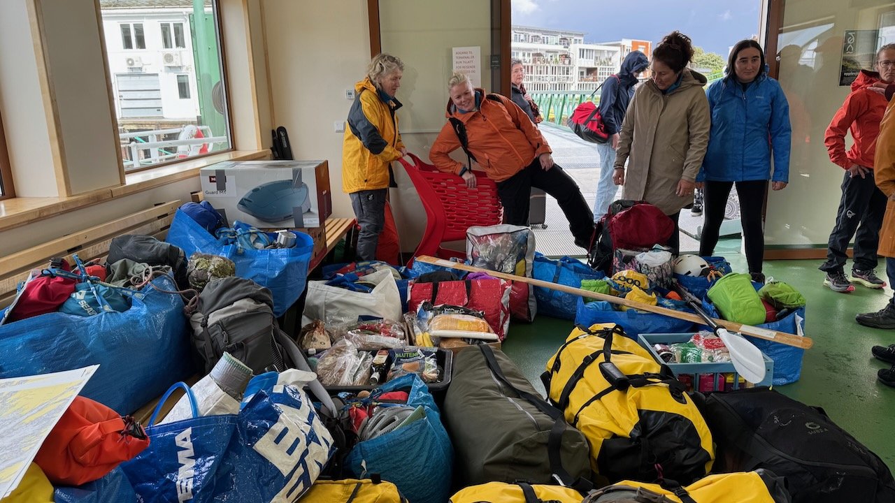 However it was clear from the forecast and the conditions on the day that it was not feasible for the whole group to undertake the 12.5nm paddle in force 6, gusting force 7 winds on the nose, with a fair swell. A flurry of chat on the group chat and a meet up at Bodil & Asle’s command centre, DTP determined an alternative option would be to get the afternoon ferry, together with all the kayaks and gear.
