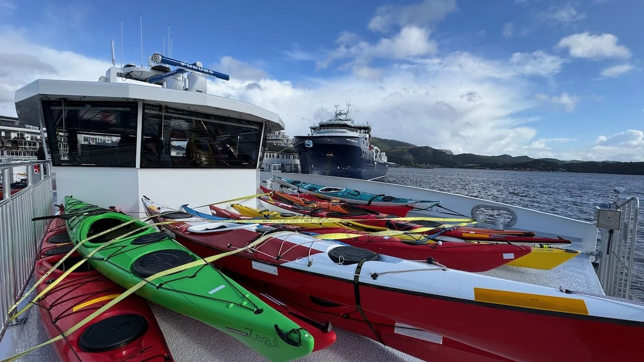 Transporting 25 kayaks along with gear and provisions for 25 kayakers might initially seem like a complex logistical challenge. However, the excellent organisational skills of the klubb combined with the accommodating nature of the AtB NAMDALINGEN ferry crew transformed the process into a smooth and enjoyable experience for everyone. With all hands on deck, we ensured that every item was securely loaded, and we set sail for Sør Gjæslingan.