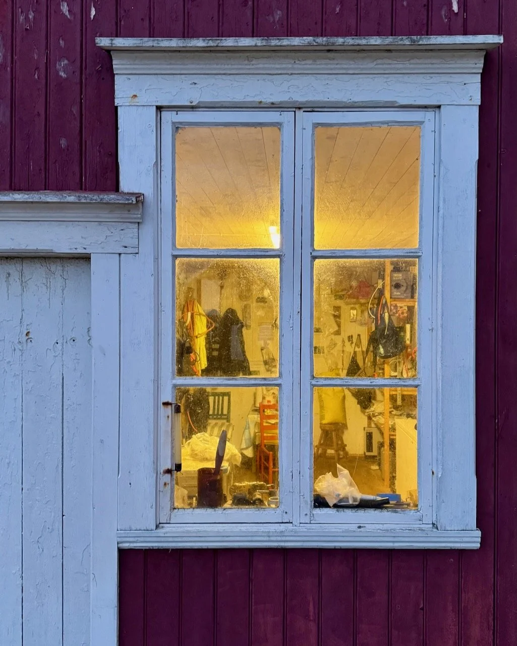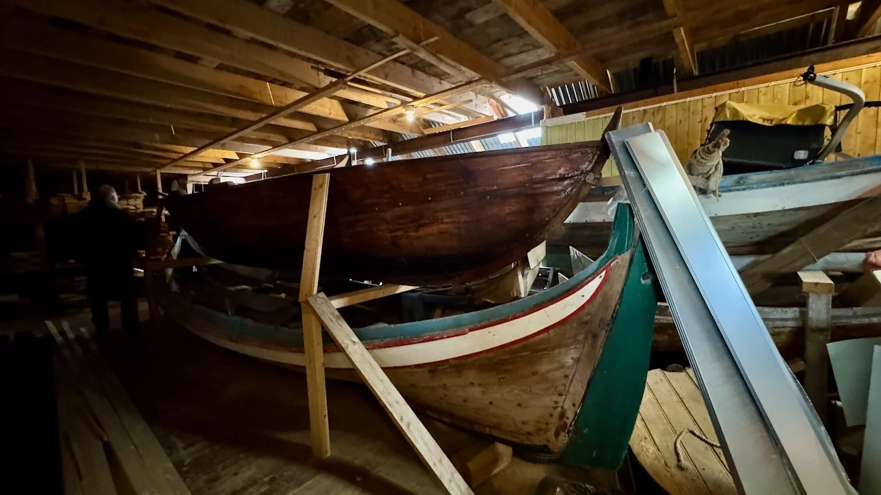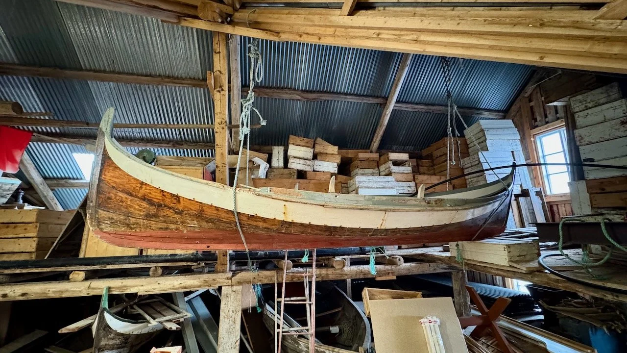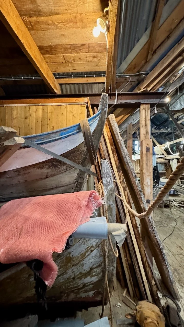 On the way back to the hut, Asle brought me into the workshops and storage buildings. There were several wonderful traditional fishing boats, with flared and raised bows & sterns (double ended). The boat profile is really striking and shows the influence of boat building from the Viking Age.