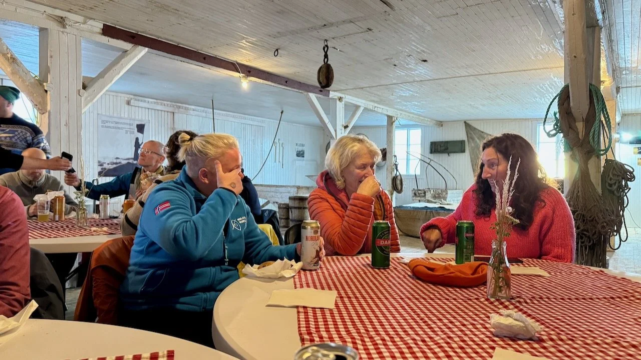 By 07:30pm everyone was making their way, by land & sea, to the Fiskemottaket (which was the Fish Reception building) for an evening feast.