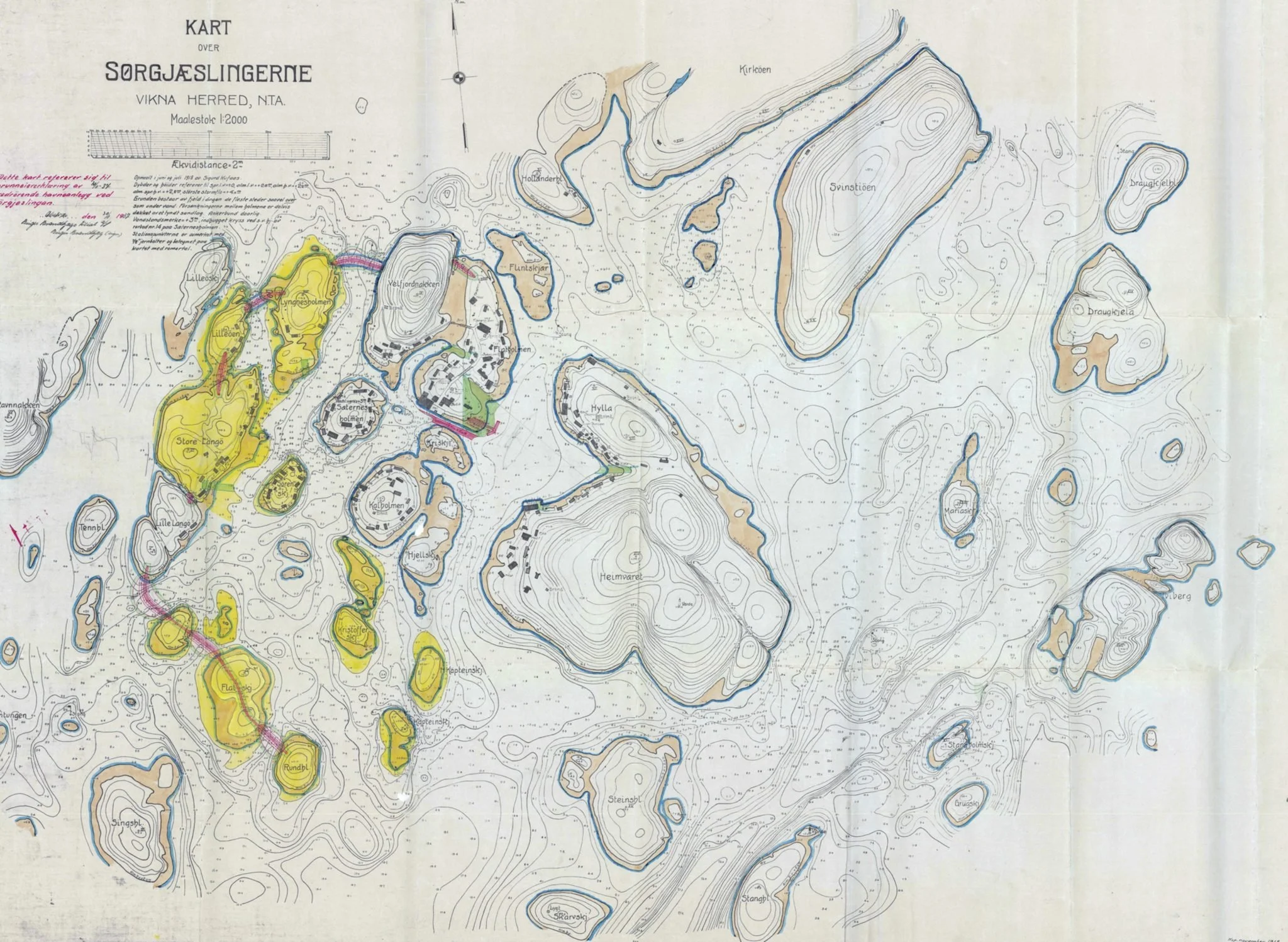 Map of Sør Gjæslingan (circa 1918 / 1937)