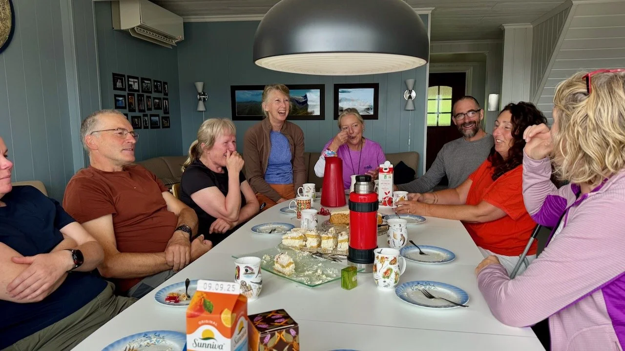 DTP and a loose plan was to sort gear and get to Bodil & Asle’s command centre by lunch time. This really was just an excuse for more cake, more coffee, and more laughter, as we relived the fun on Sør-Gjæslingan.